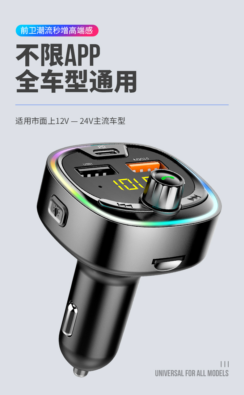 TC08D 车载手机充电器FM点烟器车载蓝牙免提电话MP3播放器QC3.0快充车充